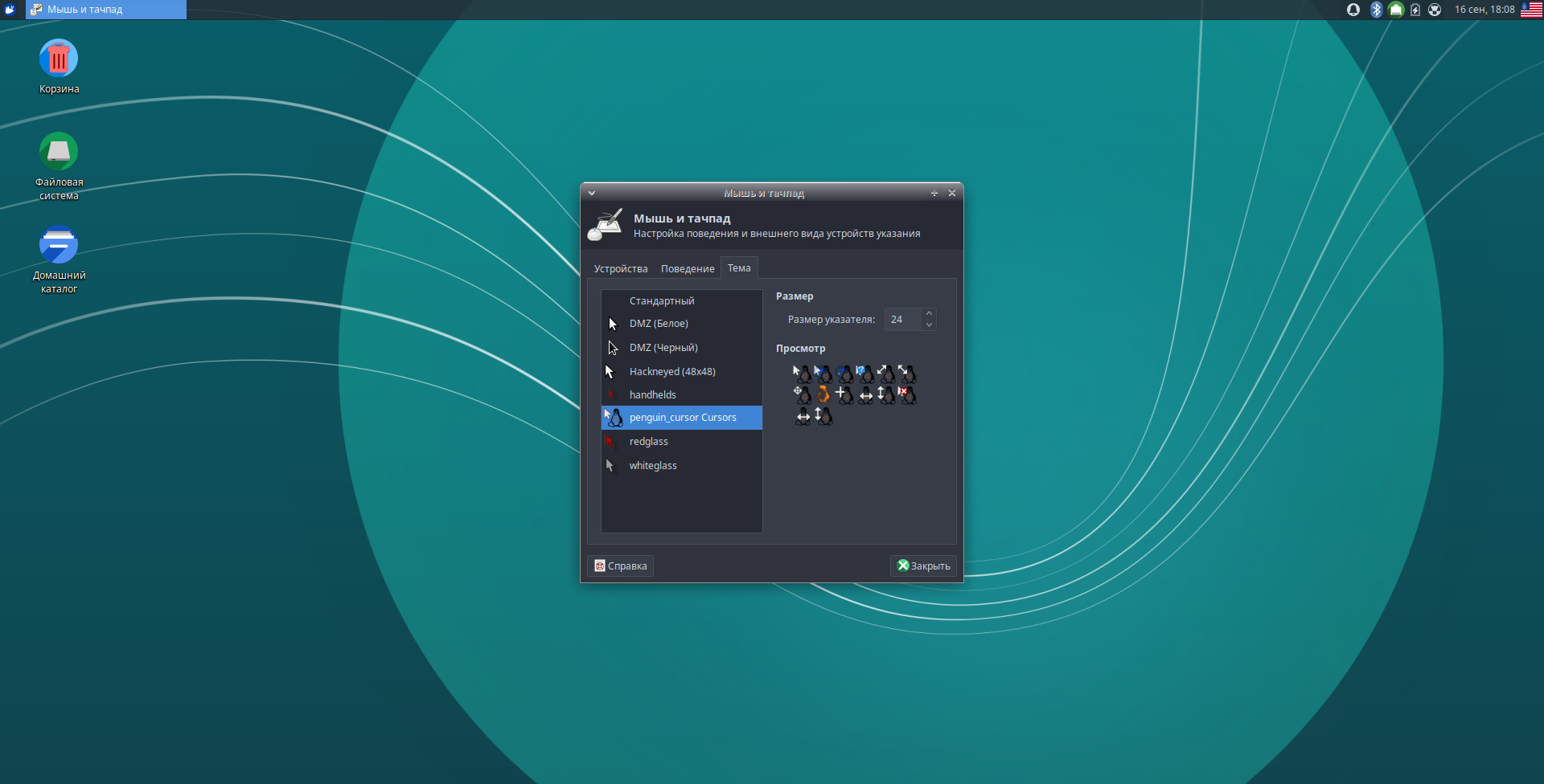 Чтобы изменить тему мыши, вам необходимо из меню запустить программу Мышь и тачпад: