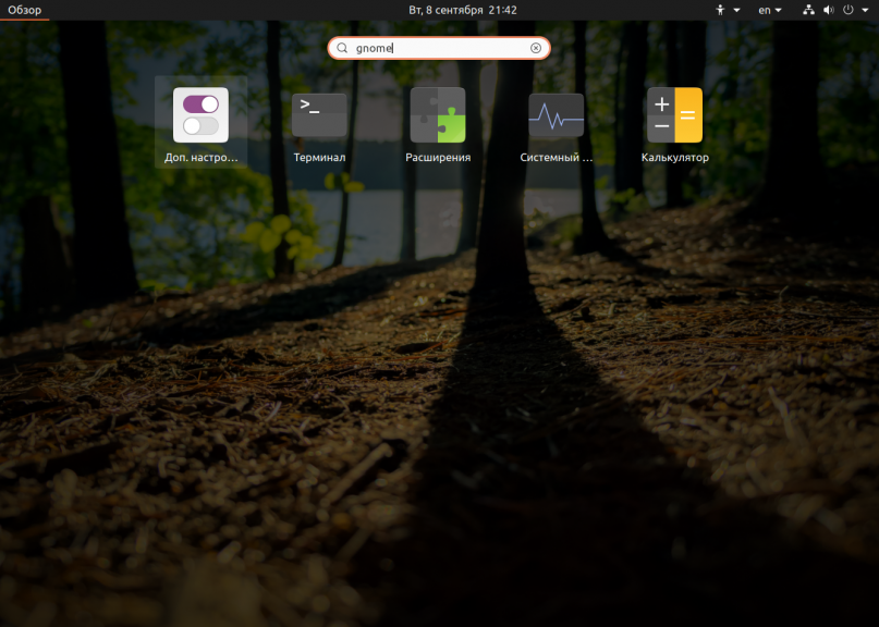 Обратите внимание, что тему оболочки вы сейчас изменить не можете. Чтобы это исправить установите базовый набор расширений Gnome:
