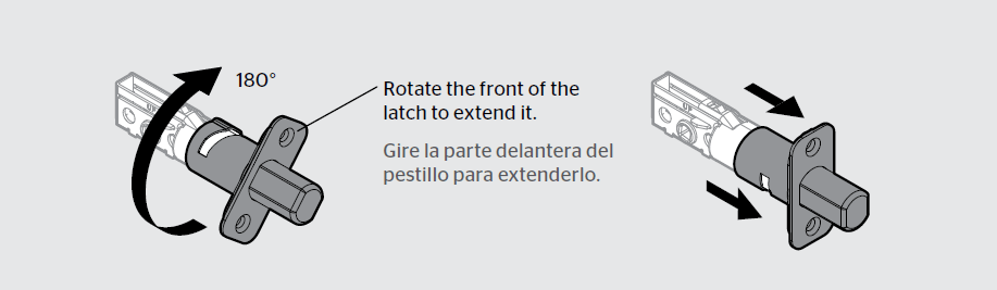 - Защелка устанавливается вверх ногами: Быстрый способ определить, что защелка перевернута, — посмотреть на поверхность цилиндра. Если он перевернут, защелка устанавливается вверх ногами.
