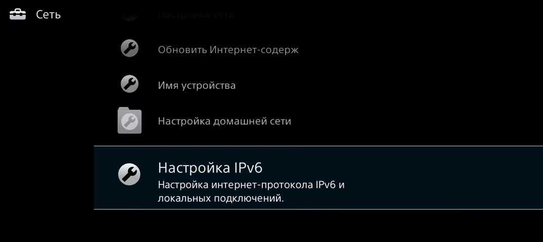 Для отключения этой функции на Sony зайдите через «HOME» в «Настройки» с «чемоданчиком». Оттуда — в «Сеть» и «Настройку IPv6».