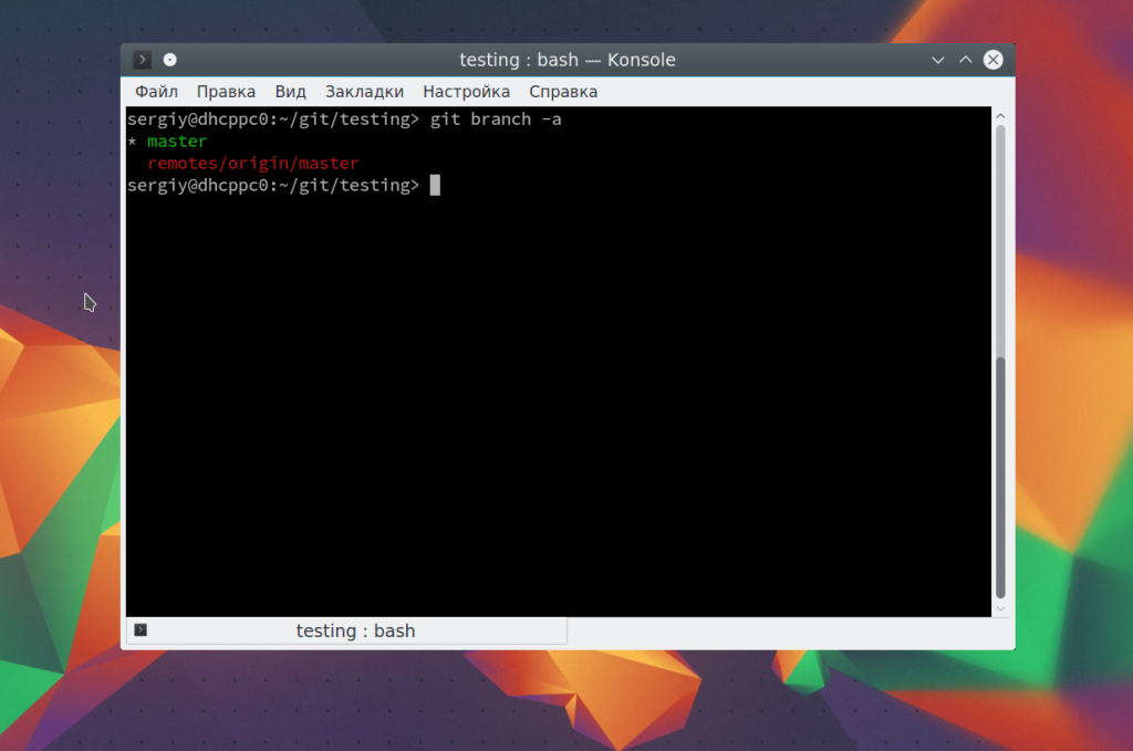 Для простых проектов достаточно одной ветви. Но если проект большой и он имеет несколько версий, в том числе тестовую, то может понадобиться создать для каждой из них отдельную ветвь. Сначала смотрим доступные ветви: