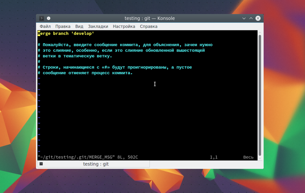 Чуть позже в рамках нашего курса настроим Git на использование другого редактора.