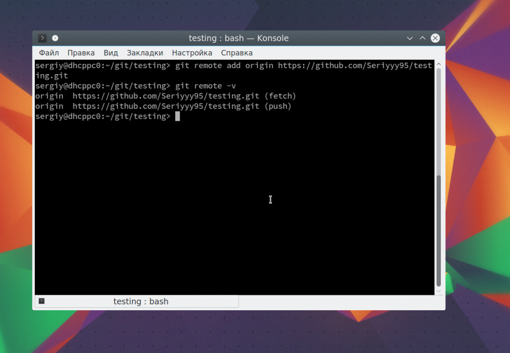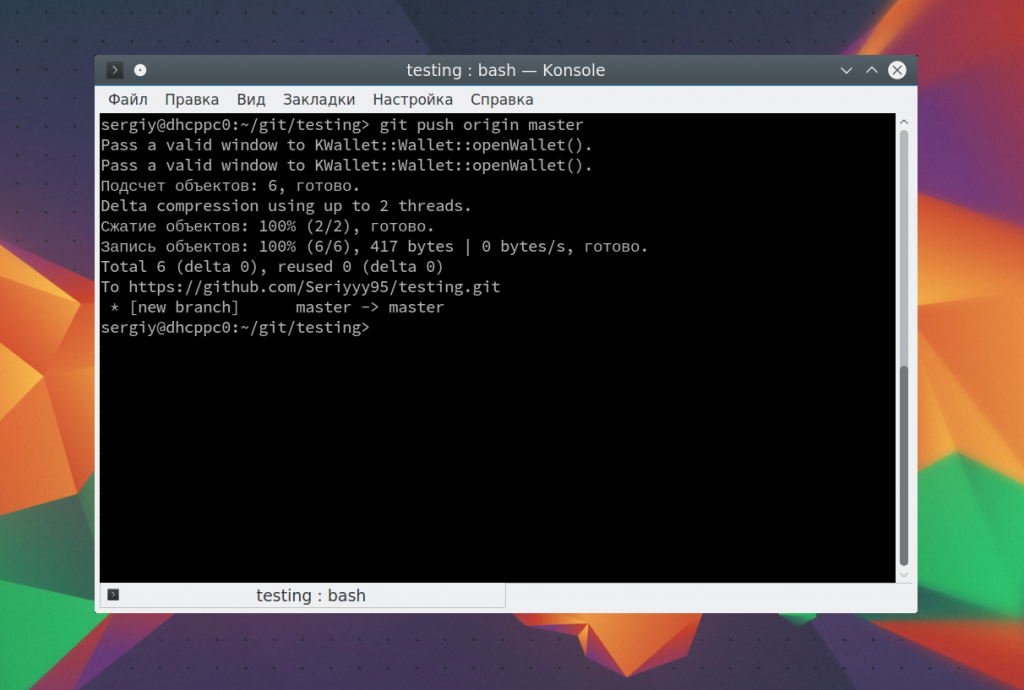 Далее, чтобы передать изменения в репозиторий на GitHub, нажимаем “Push origin”