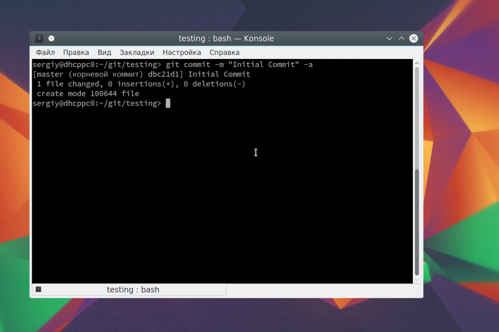 Таким образом, вы будете хранить все версии проекта, от самой первой и до текущей, а также сможете знать что, когда и где было изменено. Чтобы создать свой первый коммит выполните:
