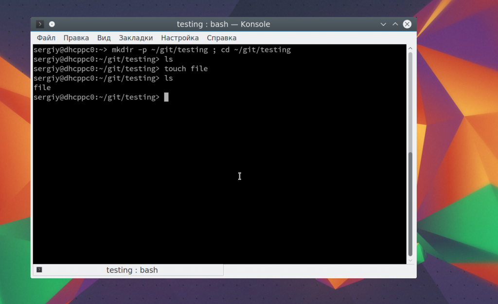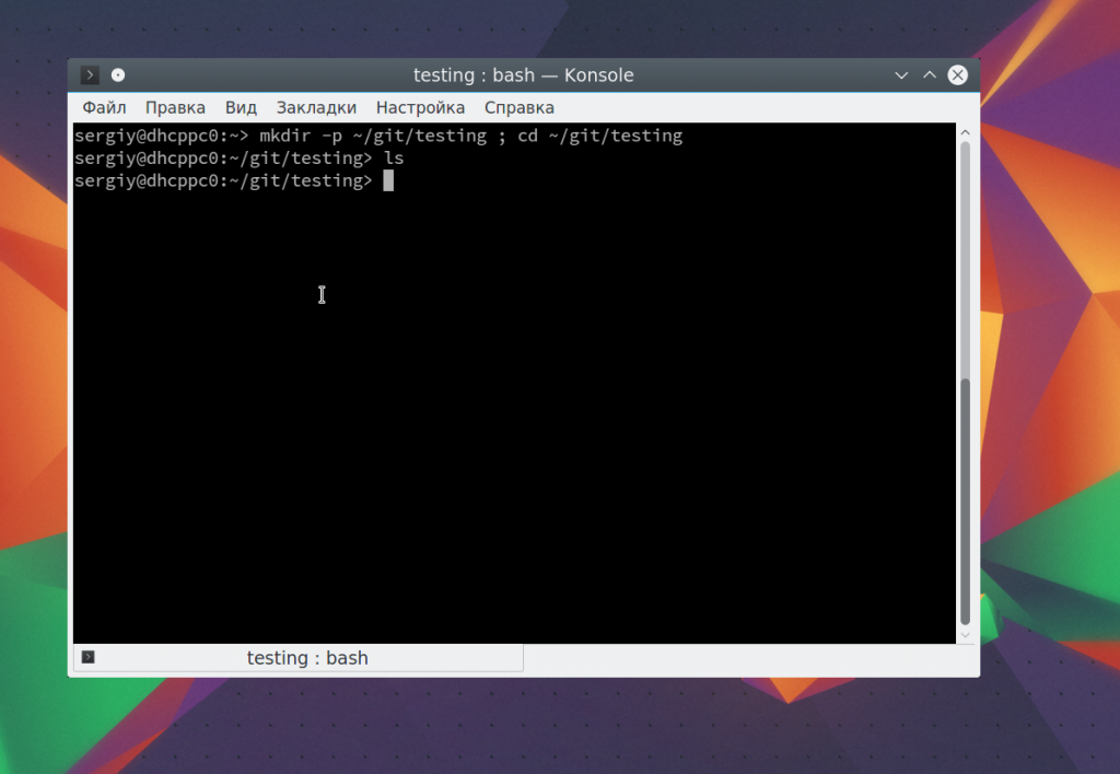 Когда настройка git завершена перейдем к вашему проекту. В самом начале вам достаточно создать папку для файлов проекта. Если вы собираетесь работать над несколькими проектами, создайте папку git в вашем домашнем каталоге, а уже туда поместите папки ваших проектов: