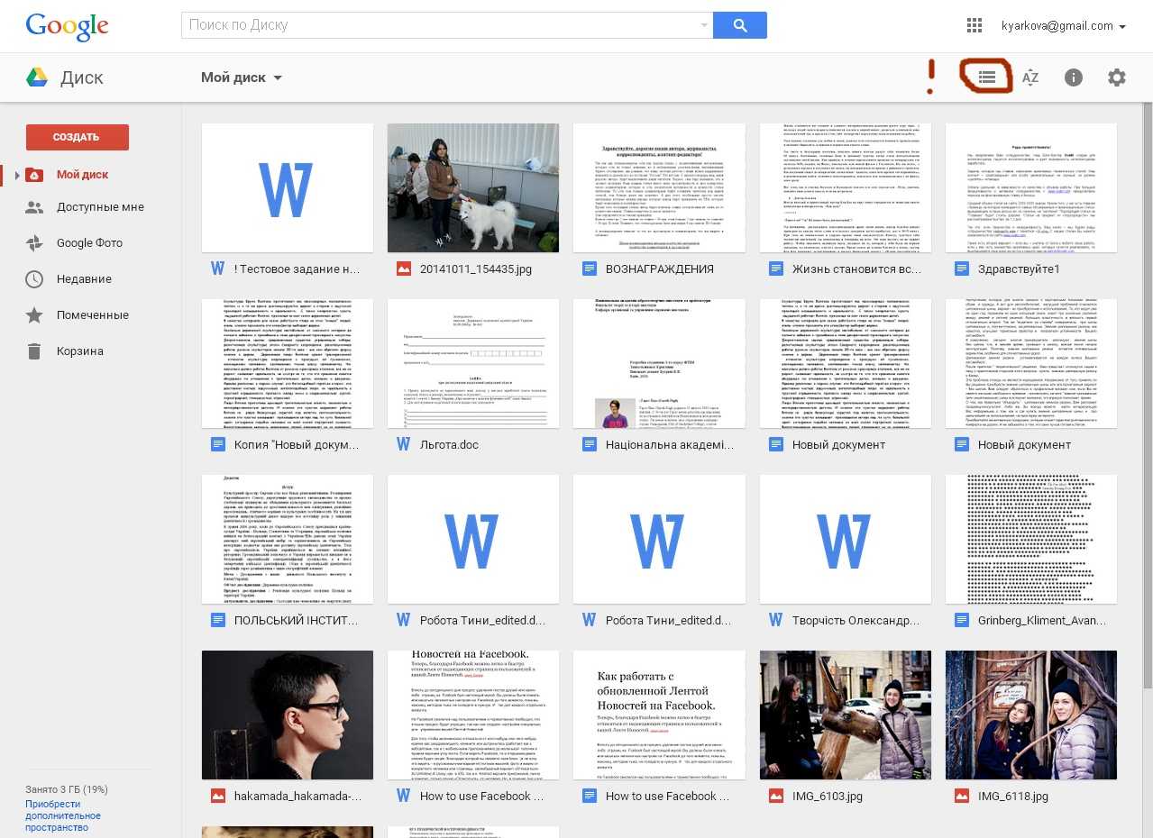 Откройте Google Drive и посмотрите на Мой диск. Если вы увидите значок сетки вместо списка, наведите курсор и нажмите В виде списка в правом верхнем углу экрана.