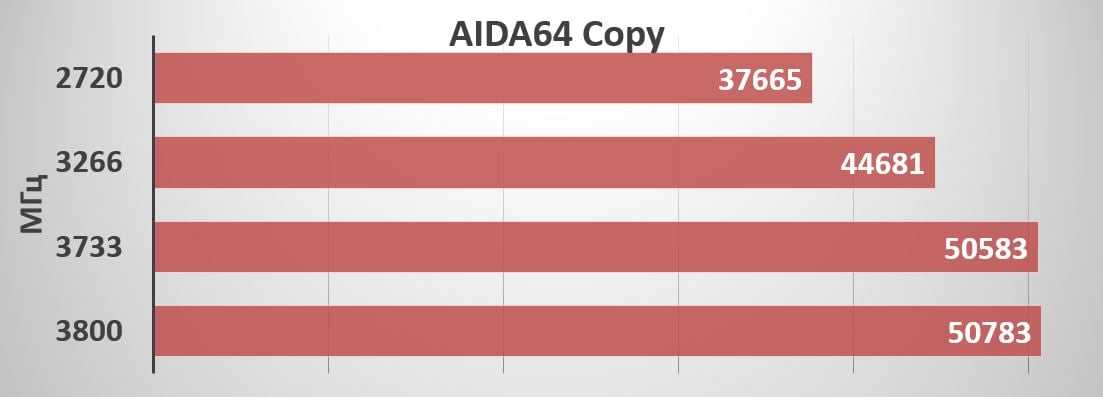 При сохранении одинаковых таймингов мы будем понижать частоту оперативной памяти: 3800, 3733, 3266, 2720 МГц.