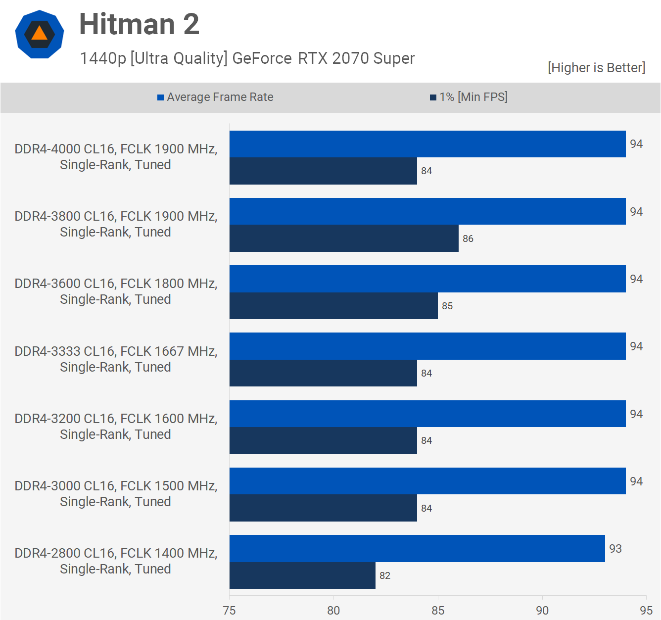 Даже в игре Hitman 2 с разрешением 1080p результаты почти целиком зависят от графического процессора. Если играть на разрешении 1440p, зависимость ещё более заметная