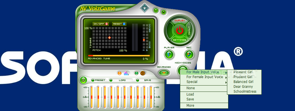 Оснащен как встроенными эффектами и фильтрами голоса, так и возможность тонкой подстройки модификаций.