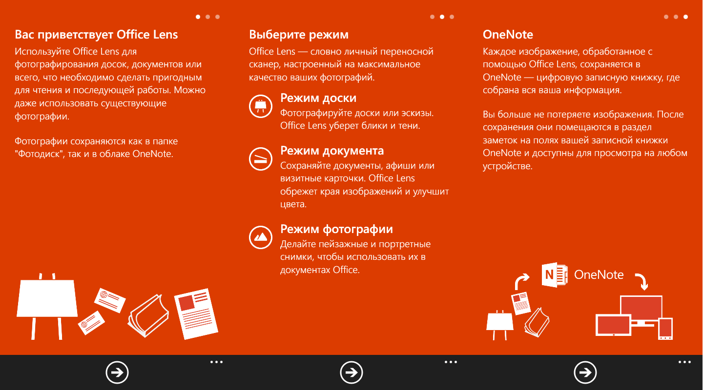 Office Lens это продвинутый сканер документов. Благодаря ему, с помощью камеры своего смартфона вы можете сделать из любого бумажного документа его электронную копию. При этом, вы можете воспользоваться одним из трех режимов:
