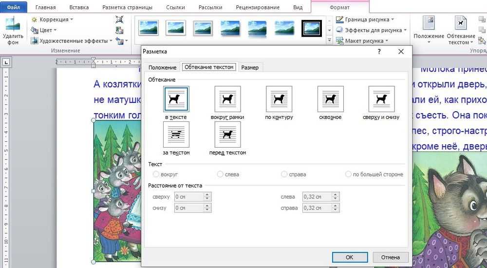 Активировать опцию «Обтекание текстом», выбрать подходящий вариант расположения рисунков в документе.