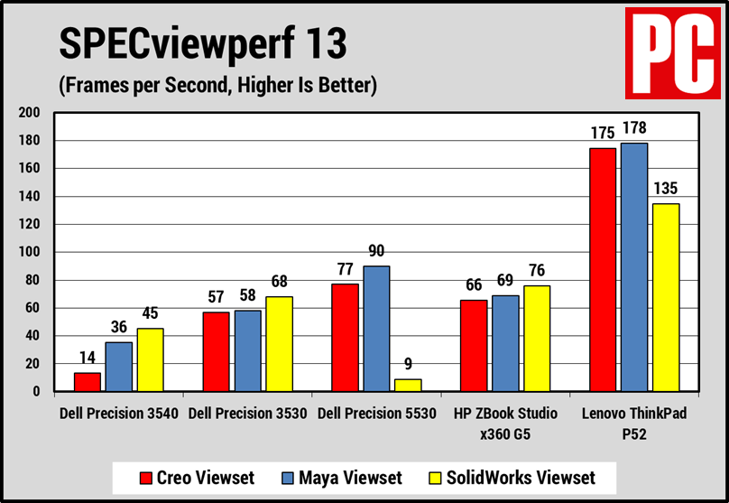 За исключением странного, внешнего сбоя Precision 5530 в рабочем процессе SolidWorks, 3540 финишировал в отдаленном последнем месте. Стоит еще раз подчеркнуть, что его конкуренты намного дороже, но это все же разочаровывает.