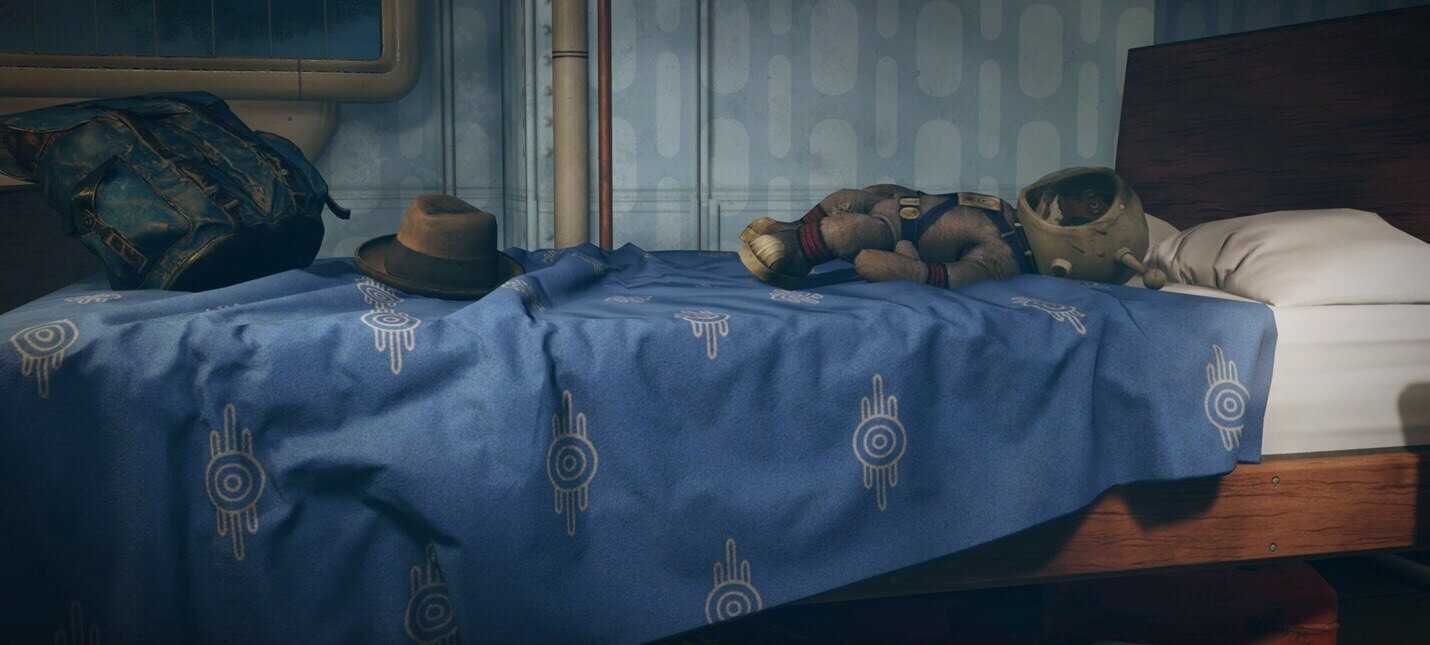 Еще один вывод, к которому пришел Polygon после просмотра тизера, — что главный герой Fallout 76 вырос в убежище. На это указывают игрушки и награды, стоящие на полках в укрытии. Одна из них — за лучший костюм на Хеллоуин. Другая — «в знак признательности за участие в программе изоляции». Рядом стоят и шуточные награды: «Самые красивые волосы», «Самый чистый туалет» и «Исключительная храбрость: за участие в эксперименте о загадочном консервированном мясе. Вы вызвались съесть , когда все остальные отказались. Мы гордимся вами и рады, что вы не умерли».