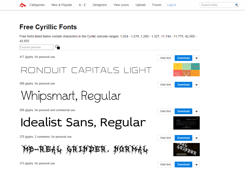 Сайты-коллекции кириллических шрифтов