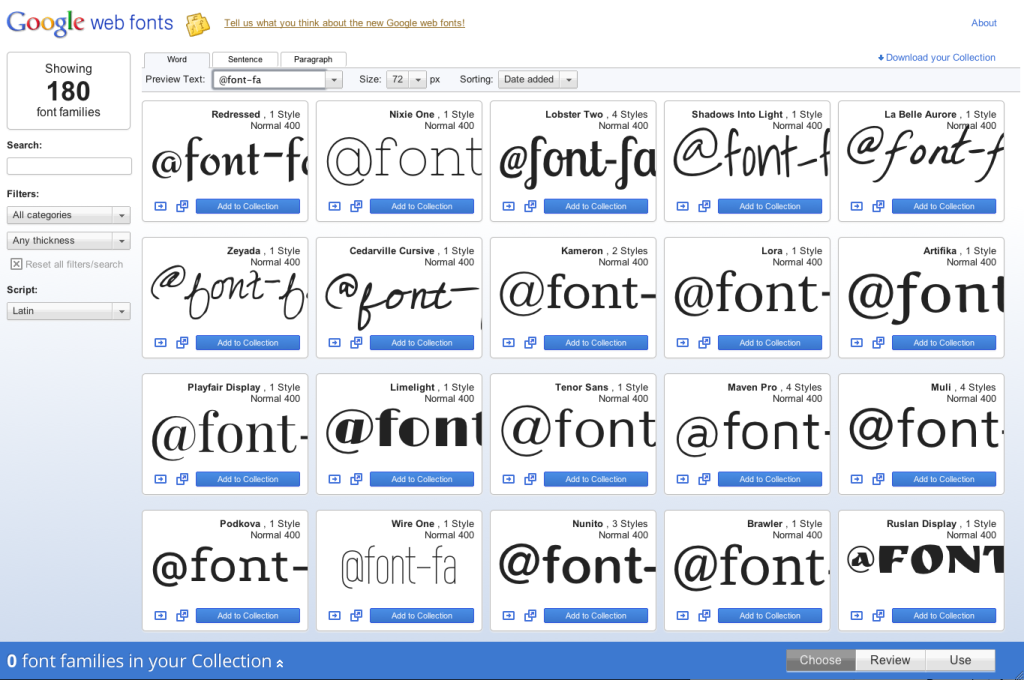 Google Fonts имеет одну из самых больших коллекций шрифтов, пригодных для использования в Интернете. Он предлагает более 1 450 различных семейств шрифтов. Вы можете сузить круг поиска по категориям, языкам, популярности и даже по таким параметрам, как толщина или ширина