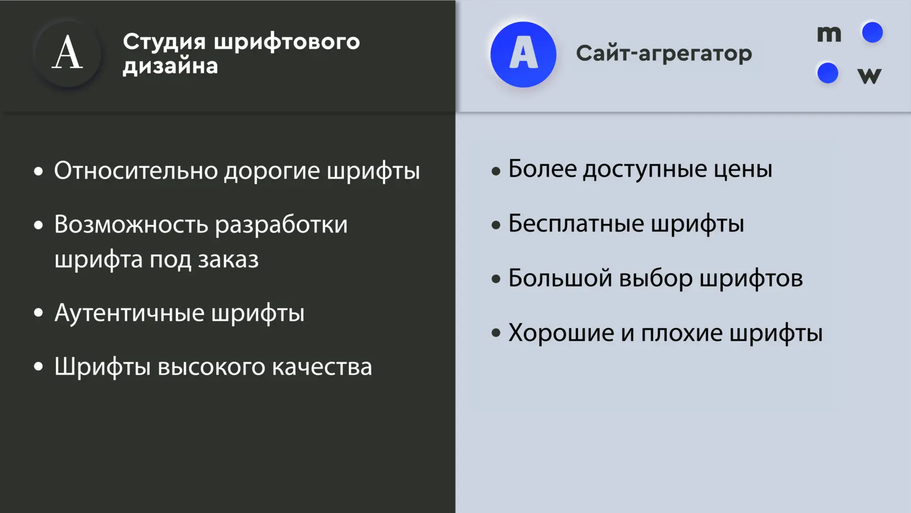 - Бегунок задаёт правило для подбора шрифта: от сильного контраста до полного сходства.