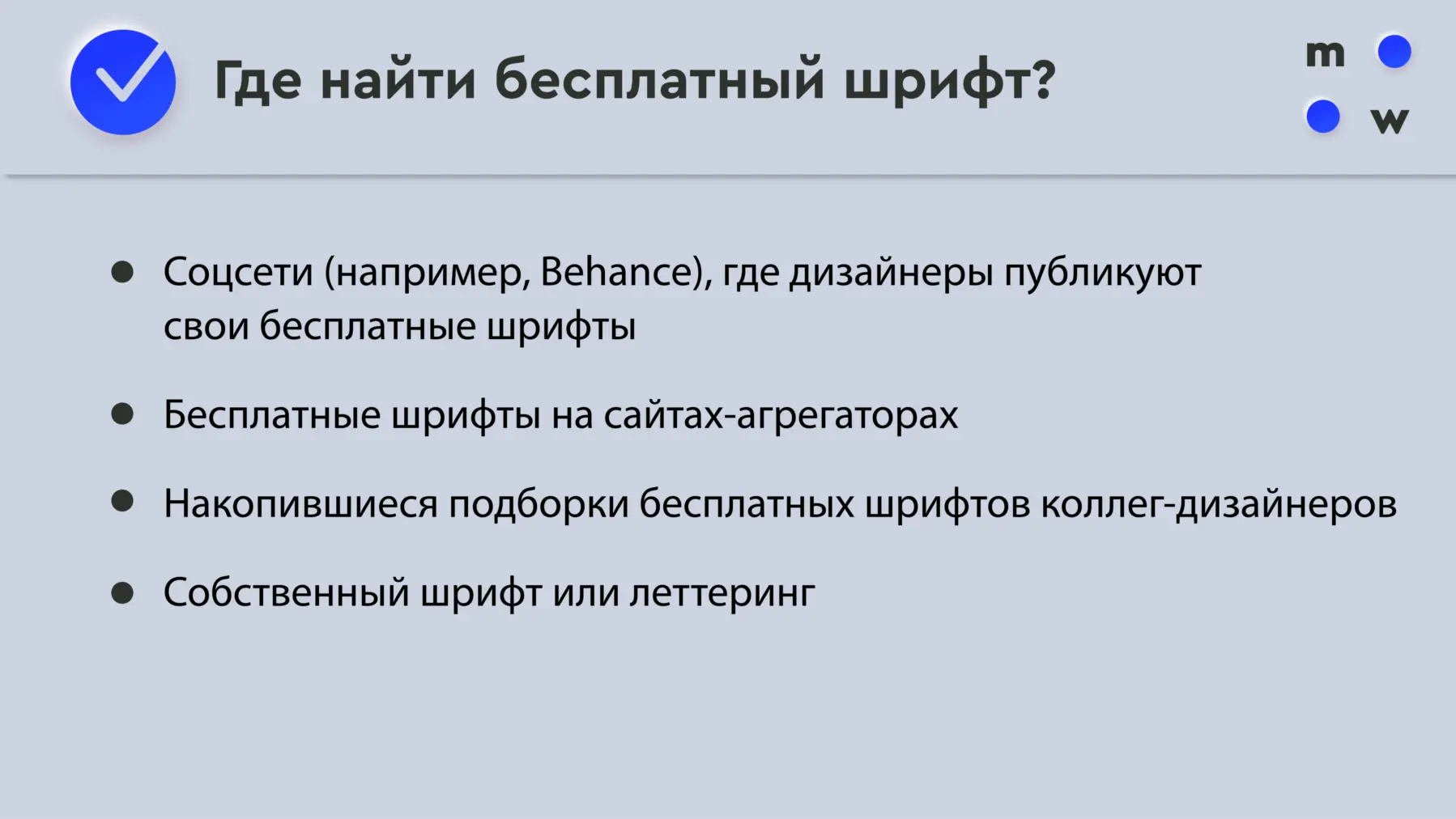 Если вы собираетесь использовать собственный шрифт для основного текста, мы рекомендуем использовать шрифт Google, так как он обычно загружается быстрее, чем другие шрифты