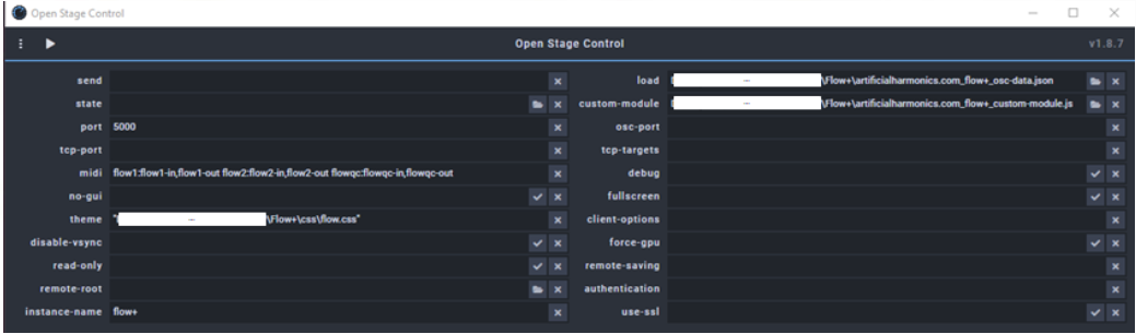 - load: select the artificialharmonics.com_flow+_osc-data.json file located inside flow+ sources folder
