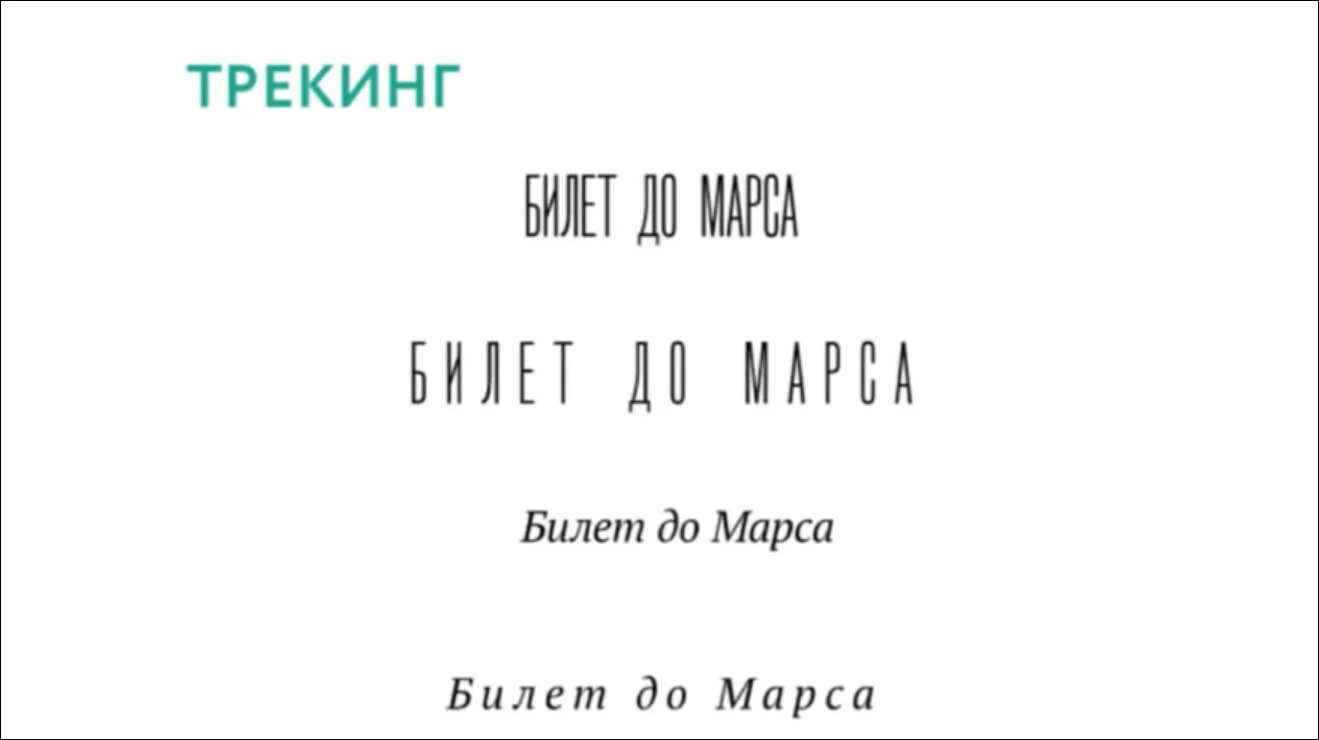 Кернинг — регулирование межбуквенного расстояния для каждой отдельной буквенной пары. Например, в сочетаниях букв AW или Го расстояние между буквами может быть нулевым или даже минусовым, потому что одна буква идеально сочетается с другой, как две части пазла. Без кернинга в некоторых комбинациях букв будут огромные непропорциональные апроши — межбуквенные пробелы.