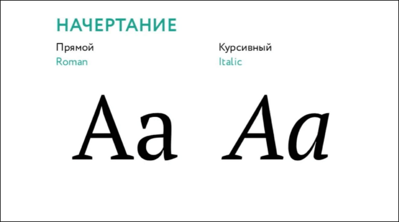 Курсив — это лёгкий наклон букв вправо, как при рукописном письме. Читается и воспринимается хуже прямого начертания. Подходит для выделения небольших частей текста: подписей, врезок, цитат.