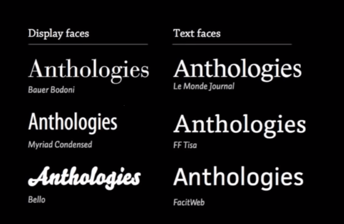 Это может показаться не особо важным делом (и вы увидите множество исключений!), но представьте, что вам нужно было что-то прочитать очень быстро, или на телефоне, находящемуся дальше, чем вам хотелось бы, или, когда на улице действительно солнечно. Все это обычно подталкивает вас к выбору шрифтов с большой высотой X и большой апертурой.