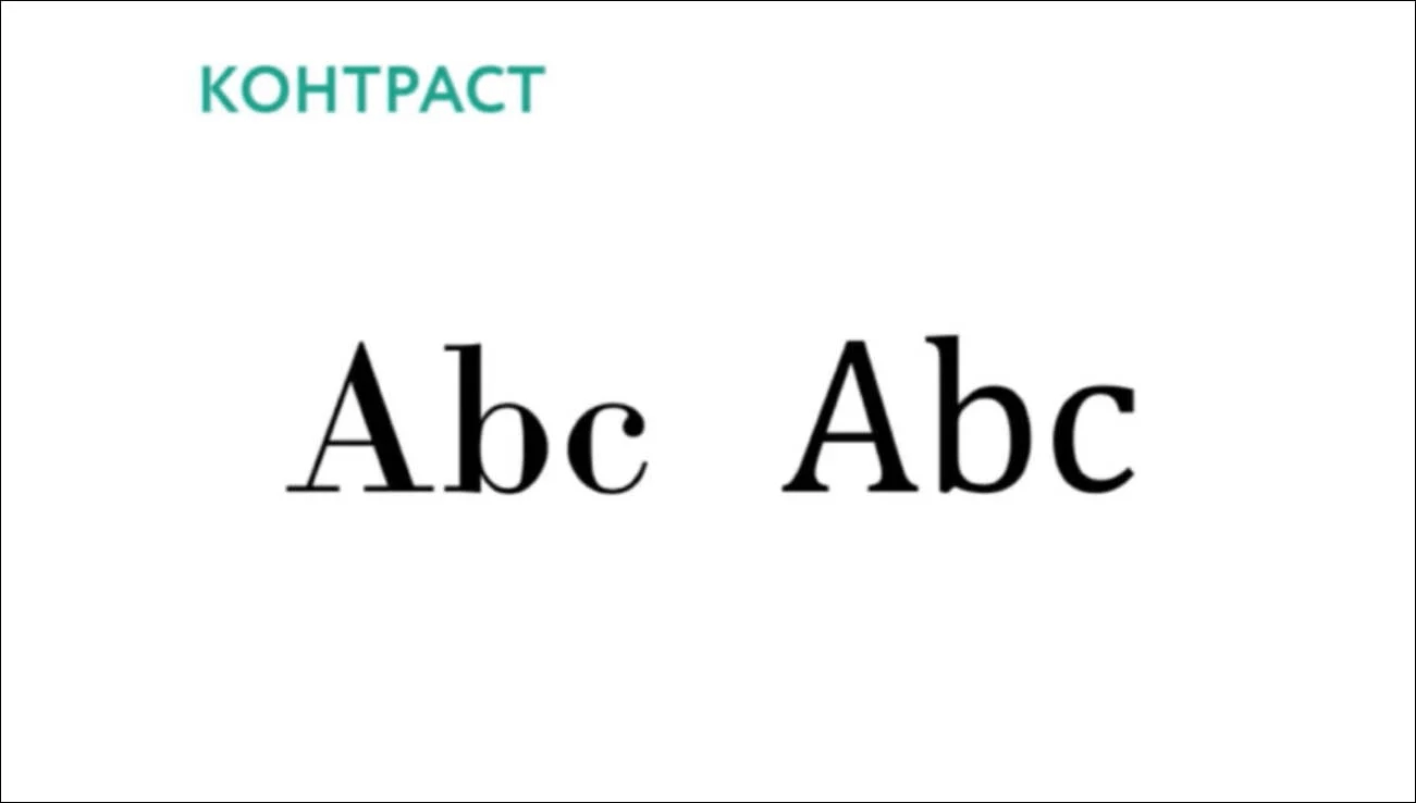 Контраст определяется разницей толщины штрихов. Чем больше разница между тонкими и толстыми линиями, тем выше контрастность.