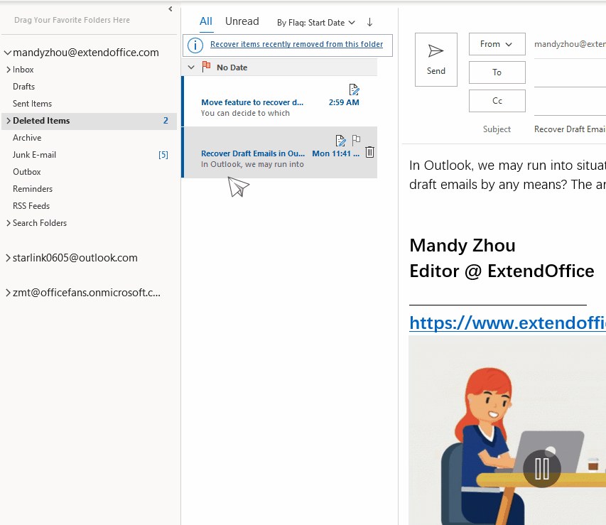 Иногда, когда вы хотите отслеживать удаленные черновики электронных писем в папке «Удаленные», вы не можете найти их там. Чтобы вернуть удаленные черновики писем, которые вам нужны, сделайте следующее.