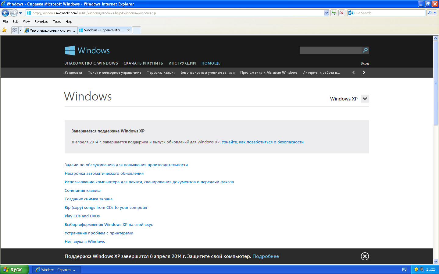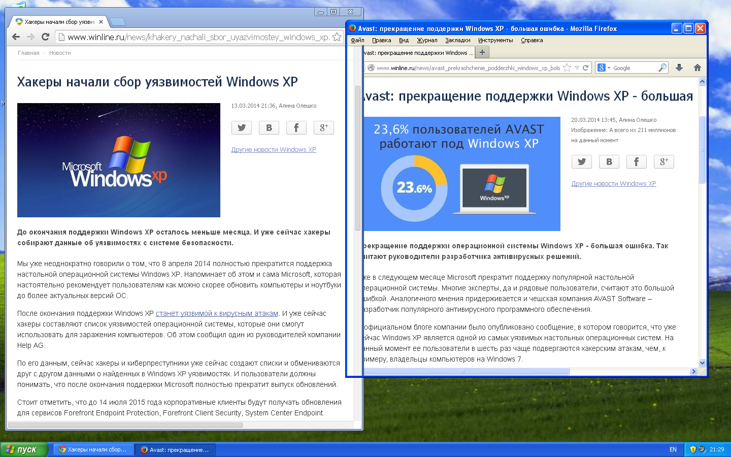 Если вы используете в Windows XP веб-браузер Microsoft Internet Explorer, то сейчас самое время перестать это делать. Самая современная доступная на XP версия браузера – IE 8, что в нескольких поколениях от нынешней IE 11, и обновления безопасности для неё уже не выпускаются. Браузер Google Chrome будет поддерживать XP минимум до апреля 2015 года, а о намерениях Mozilla Firefox прекращать поддержку системы пока ничего не известно.