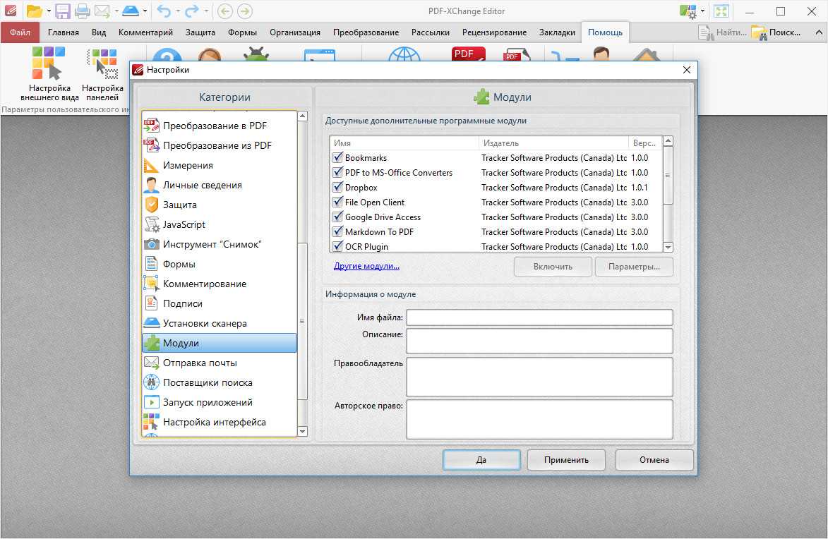 Тоже известная программа от компании Tracker Software Products — небольшой, но многофункциональный и шустрый пдф-редактор PDF-XChange Editor. Софт бесплатный, но при использовании части функций в документе появляется «водный знак». Если его отображение вам не принципиально, то можете установить эту программу, может быть у вас и не дойдут руки до этих функций. Изначально программа на английском языке, но вы можете скачать русификатор с официального сайта здесь.
