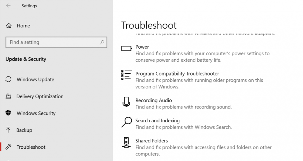 - Откройте вкладку « Устранение неполадок ».