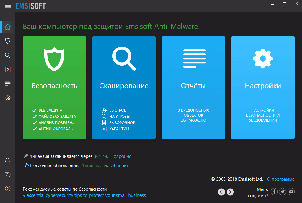 - Emsisoft с успехом борется с клавиатурными вредителями, записывающими все ваши клики по клавишам клавиатуры. Данные нажатия на клаву необходимы вредители для определения различных паролей с логинами;