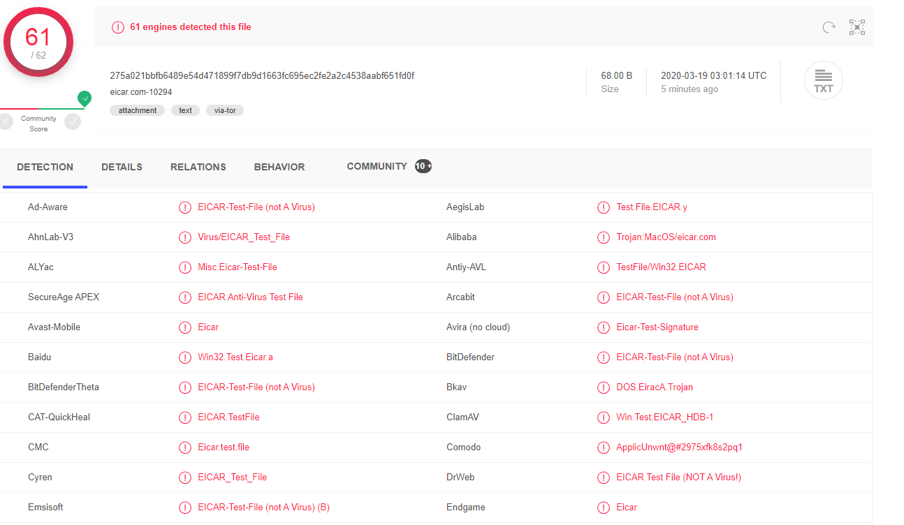 Он очень прост в использовании – просто загрузите файл или вставьте ссылку сайта в VirusTotal, после чего 70 модулей обеспечения кибербезопасности проверят файл или сайт и предоставят вам информацию о наличии угроз.