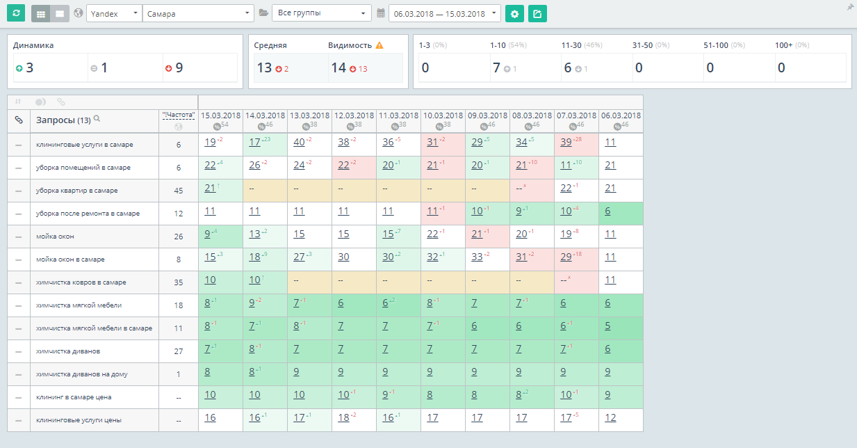 - проверка позиции сайта в поисковых системах, а также оперативное отслеживание изменений в выдаче;
