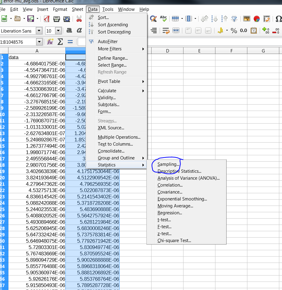 Выберите столбец, содержащий среднее значение, и перейдите к DATA —> STATISTICS —> SAMPLING
