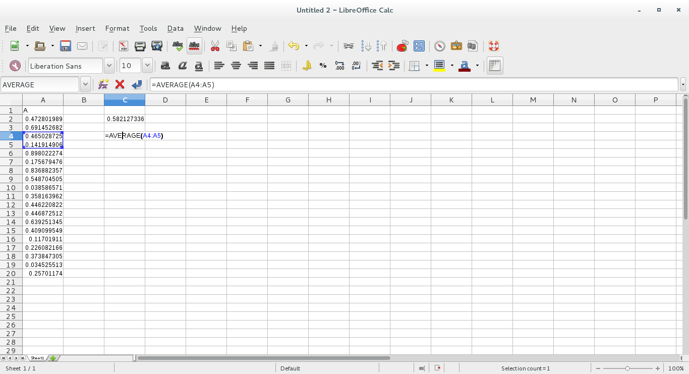 Среднее значение каждой N-ой строки в Libreoffice calc