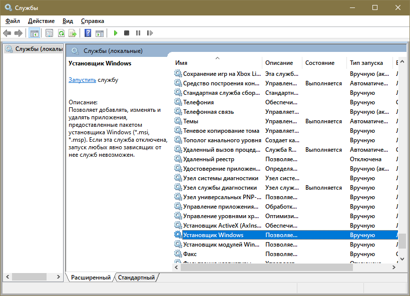 В установщике Windows также есть специальная служба, которая запускается автоматически при попытке установить приложение.