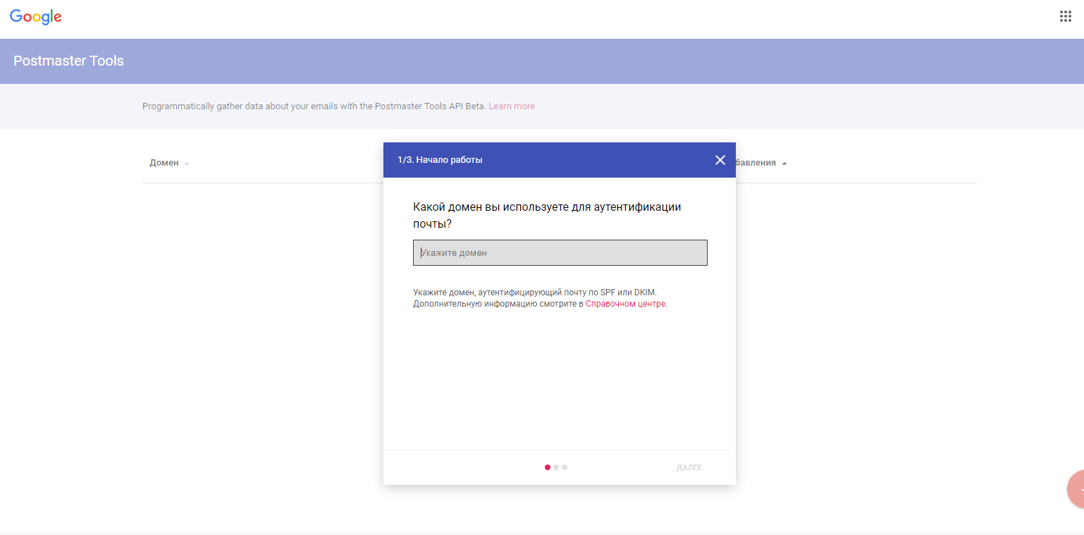 Просто и понятно, никаких лишних деталей при аутентификации почты в постмастере Google.