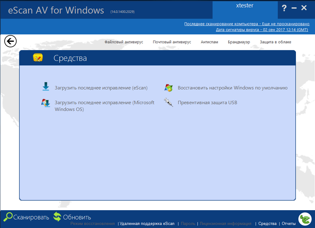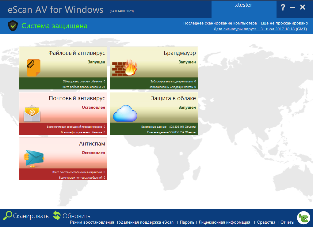 Главное окно антивируса eScan