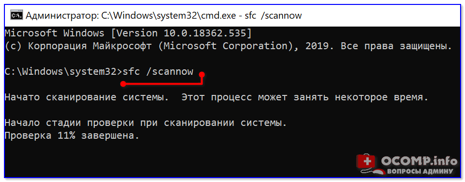 В командной строке введите sfc /scannow и нажмите Enter. Должна запустится проверка системы. Обычно на всё про всё уходит порядка 3-10 мин.