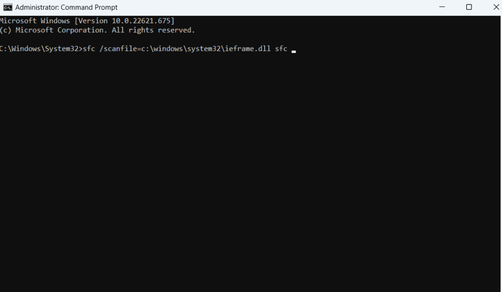 prompt sfc/scanfile=c:\windows\system32\ieframe.dll sfc/verifyfile=c:\windows\system32\ieframe.dll assoc sfc /scannow