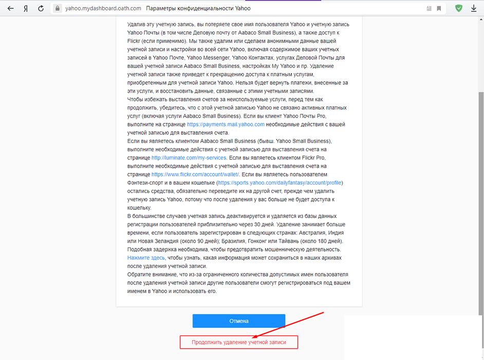 Если так получилось, что пользователь больше не желает пользоваться электронной почтой Yahoo, а также возможности данного сервиса, то ему предоставляется такая возможность, как удаление своей учетной личной записи, а также заблокировать почту.
