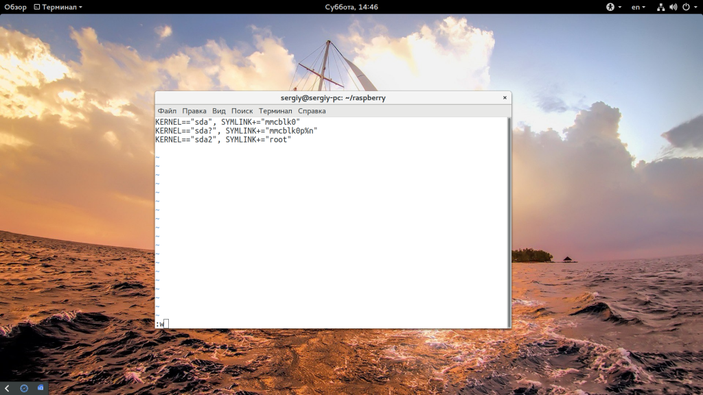Сохраните изменения и закройте файл. Нужно еще добавить несколько правил udev, чтобы Raspbian правильно определял вашу SD карту