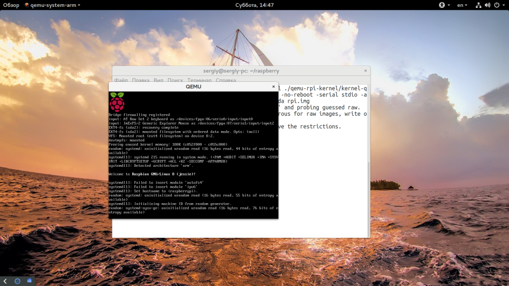 Теперь все готово и мы можем запустить эмулятор Raspberry Pi 3. Для запуска эмулятора мы будем использовать вот такую команду: