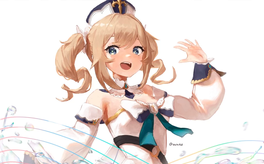 Барбара специализируется на элементе Гидро и даже несмотря на свои не особо впечатляющие боевые навыки рискует надолго прописаться в команде большинства игроков. Главное ее преимущество – способности, которые лечат персонажа и вместе с тем наносит на множество окружающих ее противников эффект влаги, что можно и нужно использовать в связке с другими элементами.