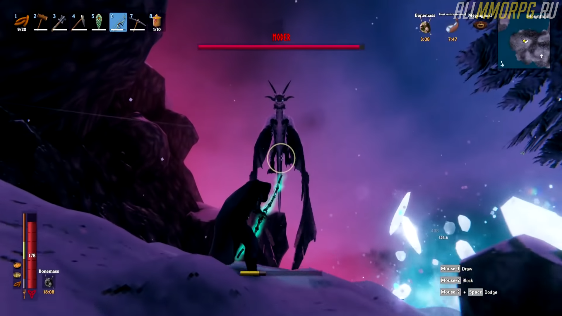 Что касается снаряжения, то вам нужно взять железную булаву, железную броню, лук, ледяные стрелы и крепкий щит. Для чего нужны ледяные стрелы? Дело в том, что Масса Костей имеет уязвимость к урону от холода, поэтому с ледяными стрелами вам будет легче победить этого босса.