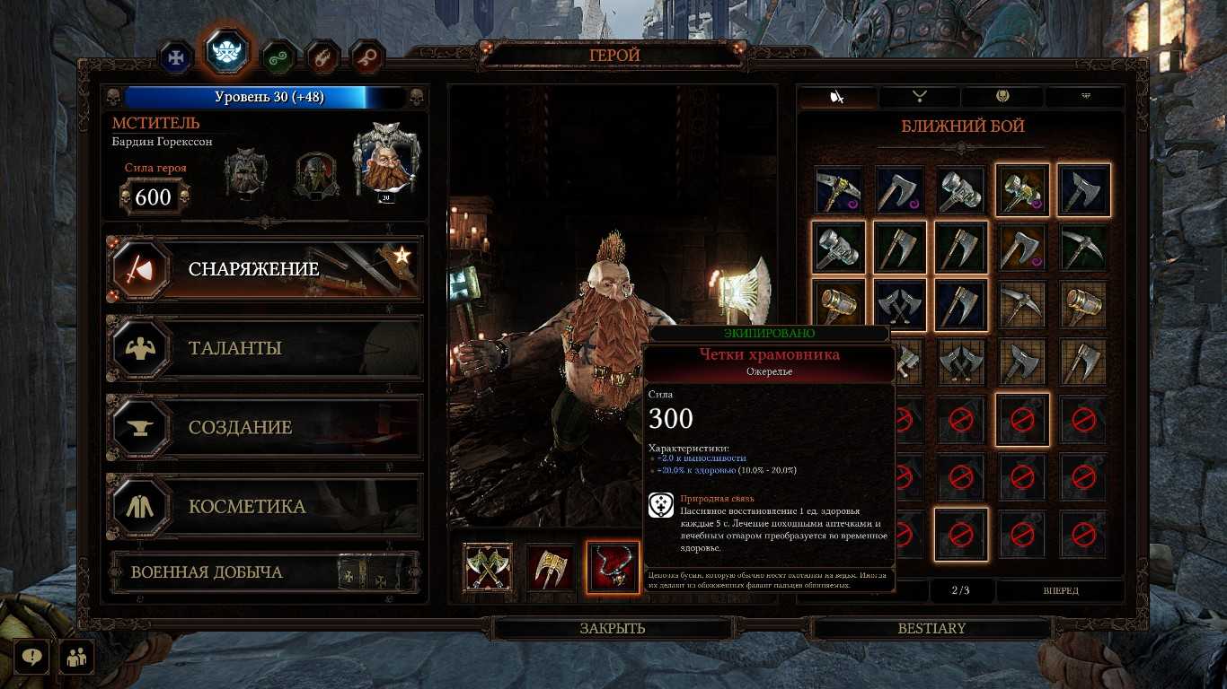 | Перк | Враг Хаоса | 30% бонус к Силе против Воинов Хаоса и Знаменосцев Зверолюдей. |