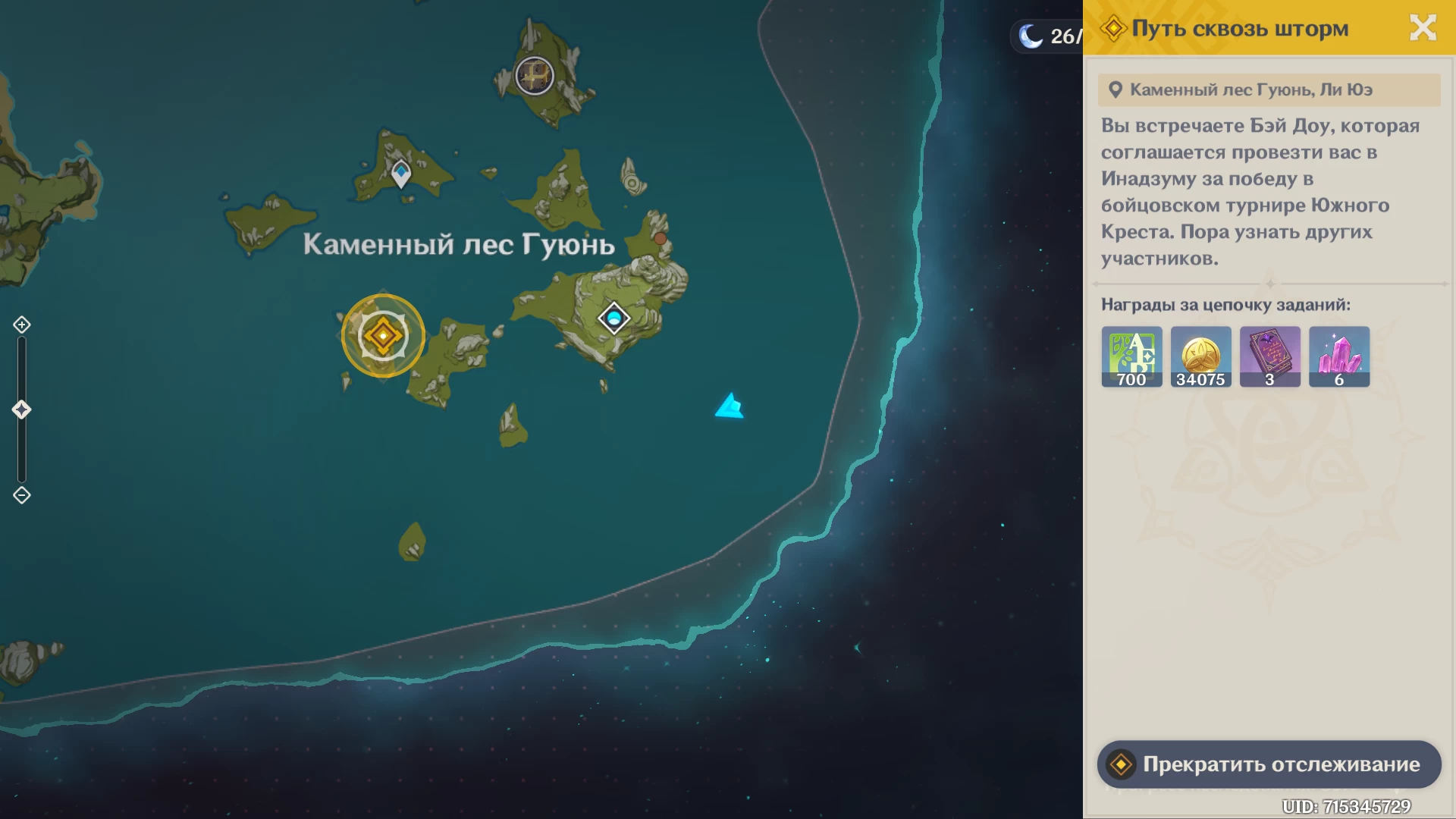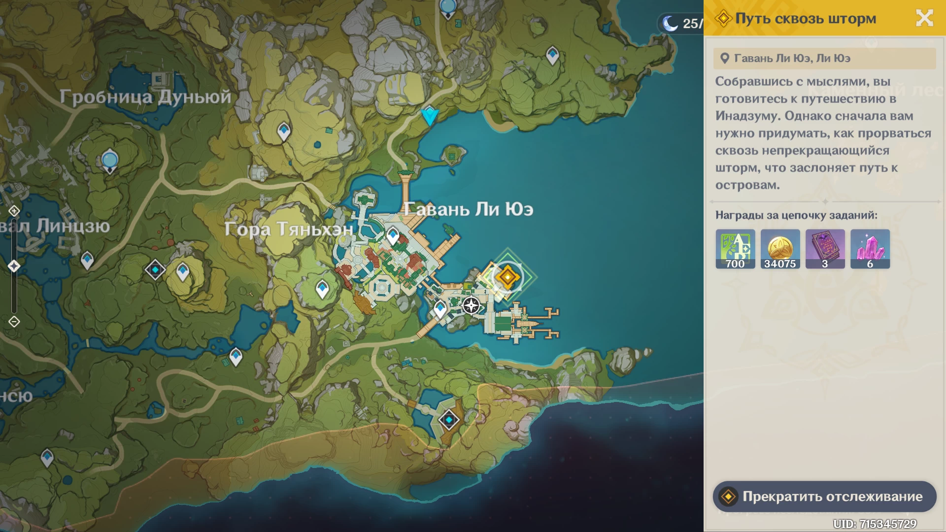 Вы получаете записку Му Нина к искательнице приключений Чжи Цюн, которая может больше рассказать о разломе. Включаем отслеживание и отправляемся на метку квеста.