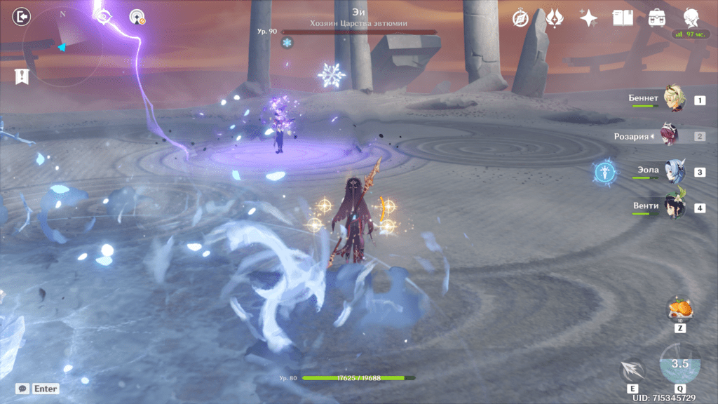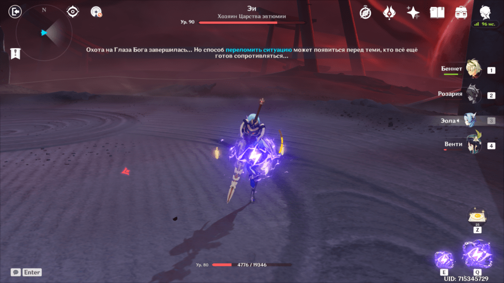 Нам снова предстоит драться, но на этот раз у нас достаточно сил, чтобы победить. Теперь наша цель — снести богине 99% здоровья. Тем не менее, будьте аккуратны, атаки Райдэн по-прежнему очень сильны.