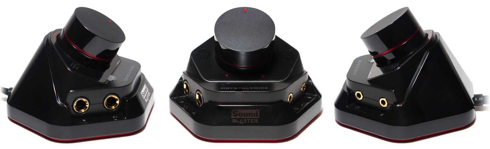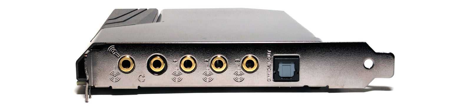 Набор точек подключения на задней планке состоит из пяти позолоченных разъемов 3,5 мм mini-jack и одного оптического выхода TOSLINK. В первые два «миниджека» подключается выносной блок. Также 3,5 мм разъемы могут использоваться для задних динамиков, центрального динамика или сабвуфера, как вход для микрофона или линейного входа (выбирается в программном обеспечении), выход для наушников или гарнитуры, передний выход.