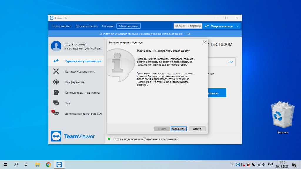 ❹ Настройте неконтролируемый доступ к данному компьютеру — TeamViewer предложит сделать это при первом запуске.